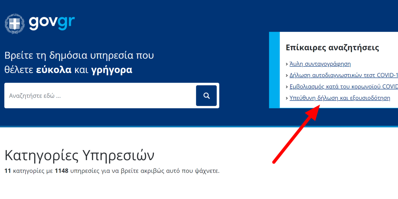 Πληκτρολογείς https://www.gov.gr/ και επιλέγεις από δεξιά, το ‘Υπεύθυνη δήλωση και εξουσιοδότηση‘